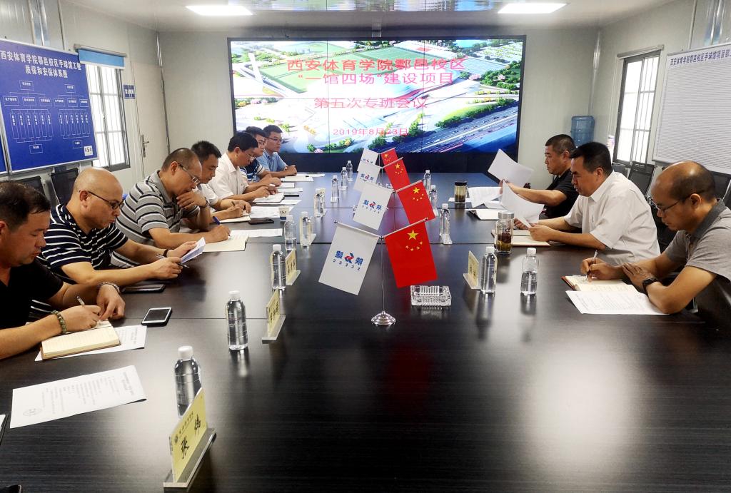 本网讯 8月23日下午,副校长李富生在鄠邑新校区项目建设现场主持召开了第十四届全运会学院鄠邑校区“一馆四场”项目第五次专班工作会议。设计单位、手球馆施工单位及监理单位负责人、二期工程(十四届全运会曲、棒、垒、橄赛场及赛事服务附属设施)施工及监理单位负责人参加了会议,省体育局场馆处副调研员刘进列席参加。