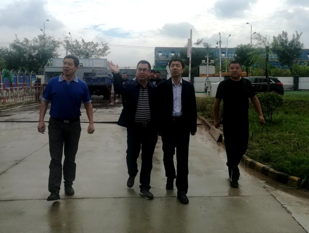 李富生(左二)向朱昱(右二)介绍项目建设情况